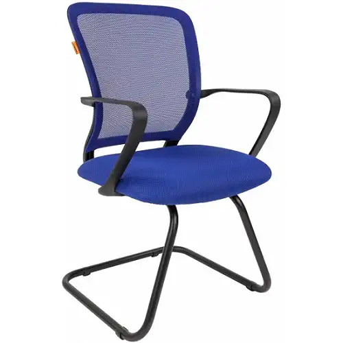 Кресло офисное синее сетка нак полозьях. Материал сиденья и спинки сетка, подлокотники пластик черный, ножки металл.