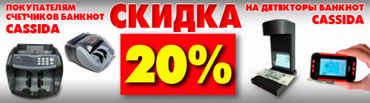 Купите любой счетчик банкнот Cassida и получите скидку 20% на детекторы банкнот Cassida.